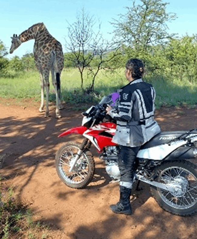 Experience a scenic game drive on a motorcycle, exploring breathtaking landscapes and encountering wildlife at the Lion & Safari Park.